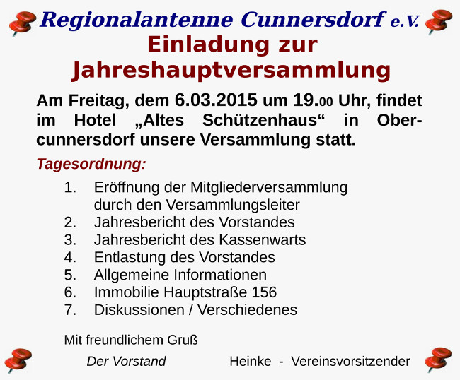 Sehr geehrte Mitglieder von Regionalantenne Cunnersdorf e.V.,