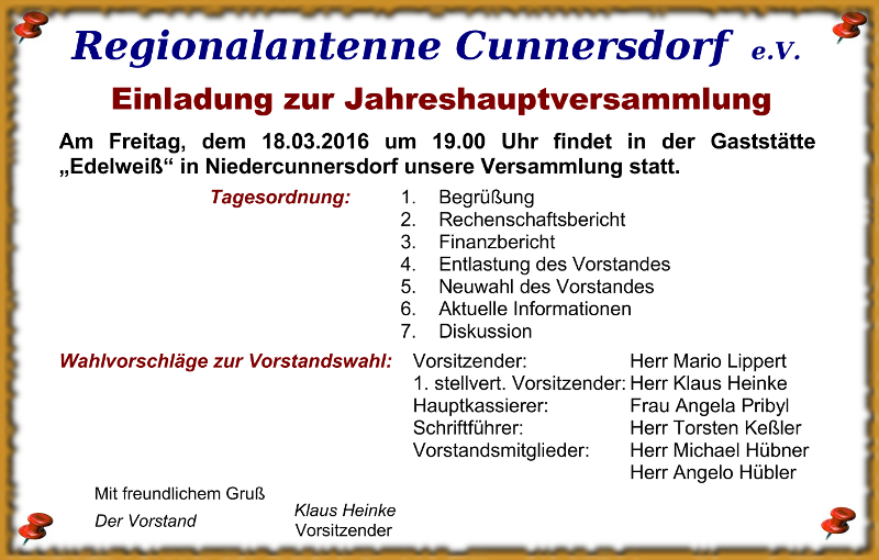 16.02.2016 Einladung zur Jahreshauptversammlung