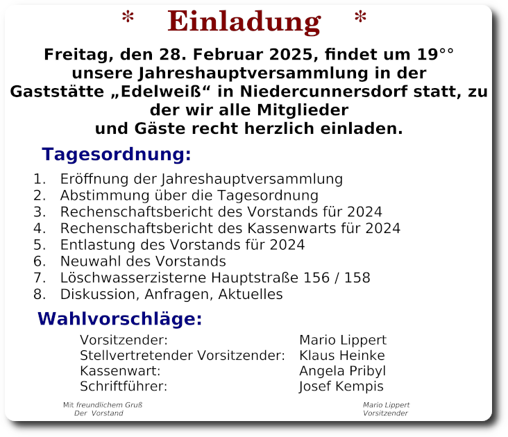 06.01.2025 Einladung zur JHV