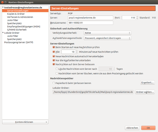 Mit Thunderbird o. ä. funktioniert das nur innerhalb unseres Kabelnetzes !